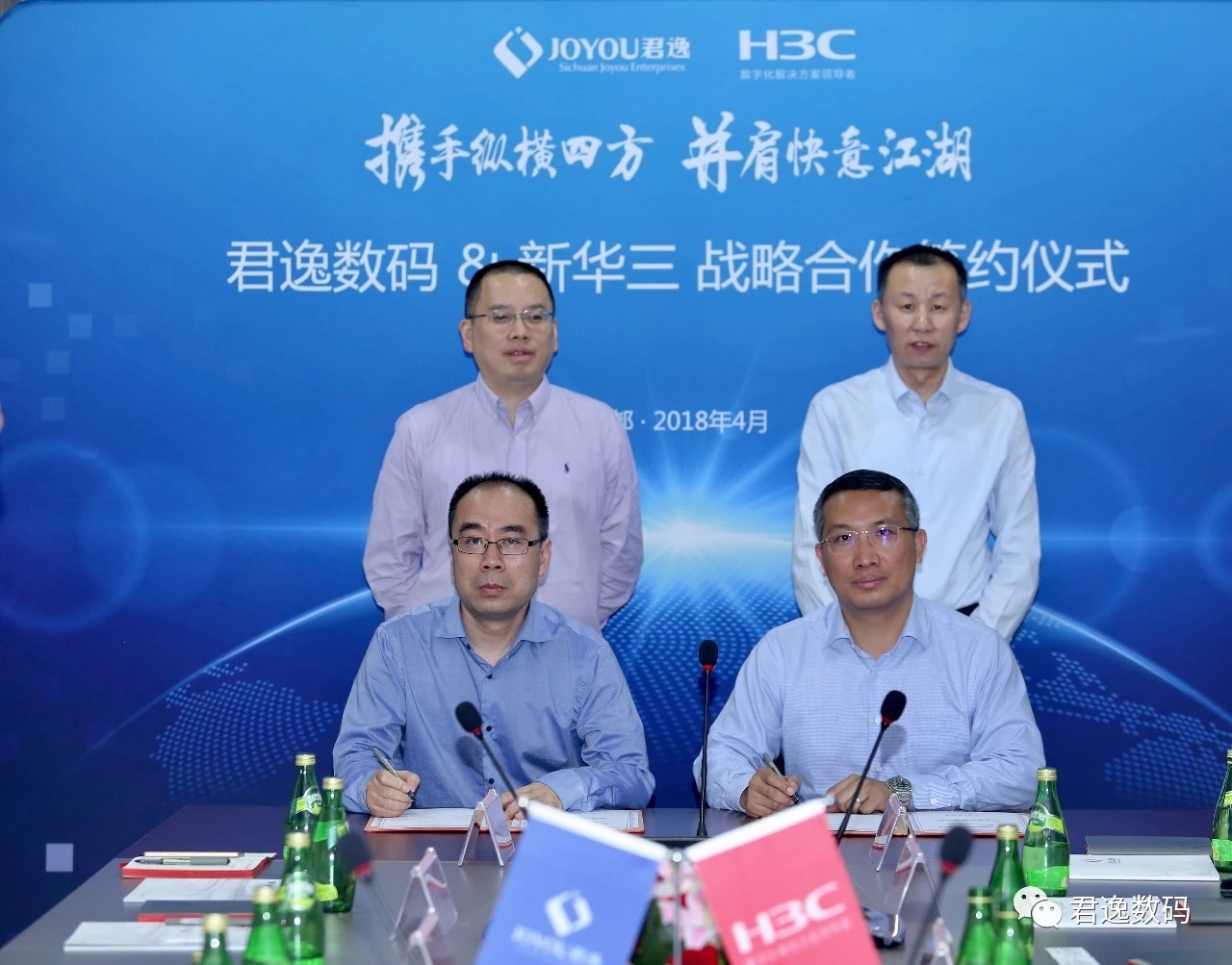 2018年4月19日,四川君逸數(shù)碼科技股份有限公司(以下簡(jiǎn)稱“君逸數(shù)碼”)與紫光旗下新華三集團(tuán)(以下簡(jiǎn)稱“新華三集團(tuán)”)戰(zhàn)略合作簽約儀式在君逸數(shù)碼總部隆重舉行。新華三集團(tuán)副總裁、產(chǎn)品行銷部總經(jīng)理畢首文,新華三集團(tuán)成都研究院院長(zhǎng)、四川代表處總經(jīng)理管志強(qiáng),新華三集團(tuán)網(wǎng)絡(luò)產(chǎn)品部副總經(jīng)理?xiàng)詈\娕c君逸數(shù)碼董事長(zhǎng)曾立軍、副總經(jīng)理杜曉峰、副總經(jīng)理謝明、副總經(jīng)理張志銳等出席了簽約儀式。