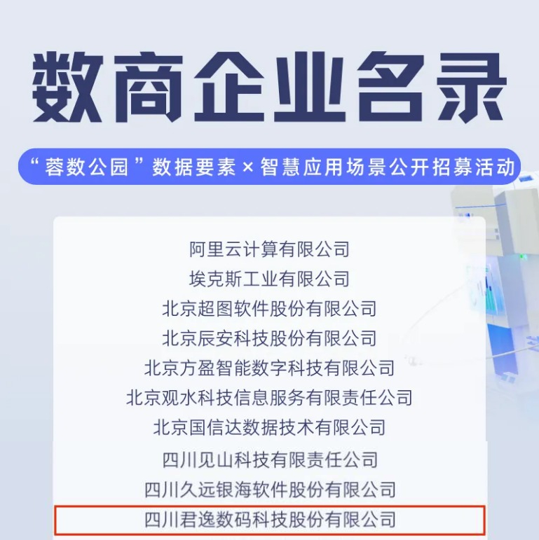 2024年6月13日,“蓉數(shù)公園”-數(shù)據(jù)要素×智慧應(yīng)用場景入圍名單正式發(fā)布。君逸數(shù)碼成功入圍應(yīng)急管理-城市生命線、城市治理-智慧住建、智慧教育-智慧校園、智慧教育-教育資源數(shù)據(jù)融通四個建設(shè)標(biāo)包。成功上榜“蓉數(shù)公園”首批數(shù)商企業(yè)名錄。