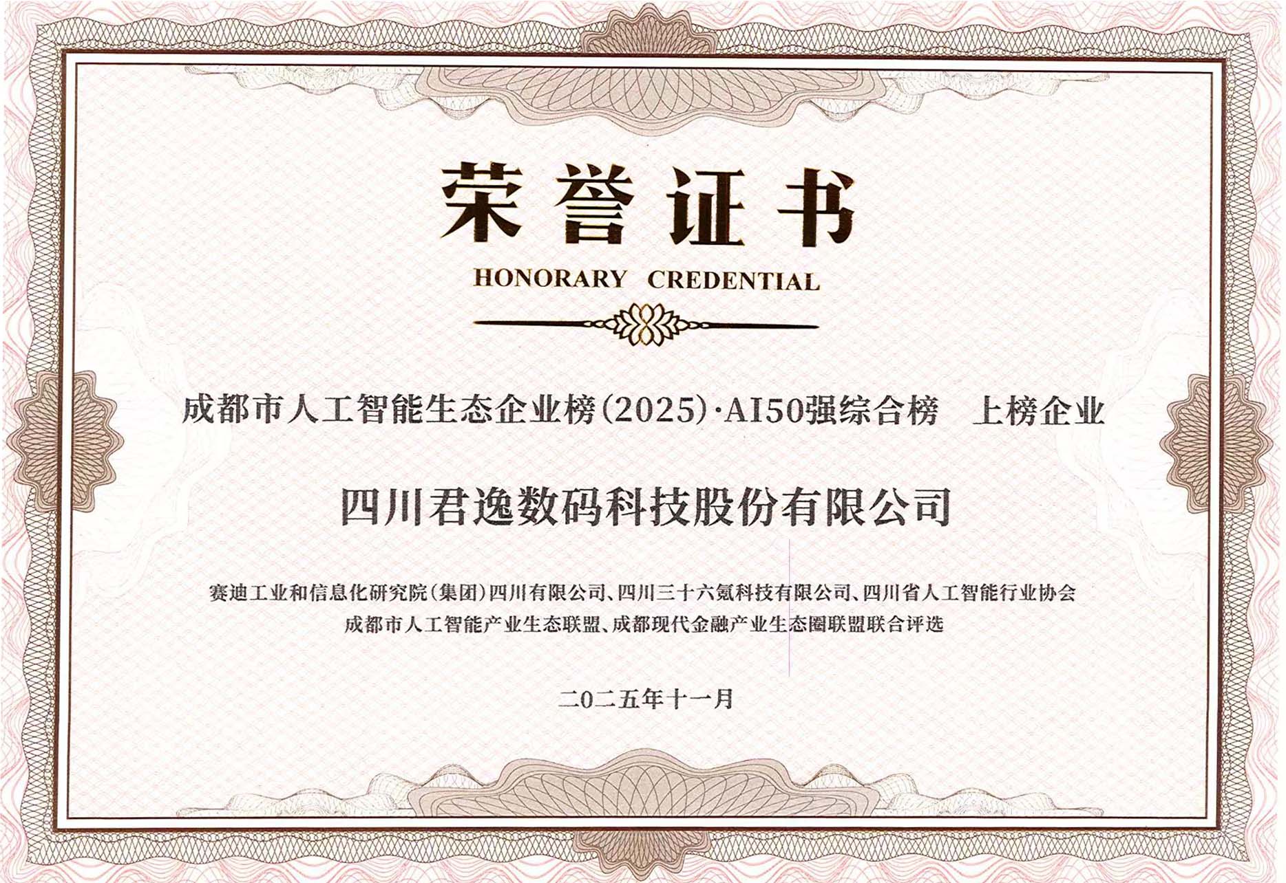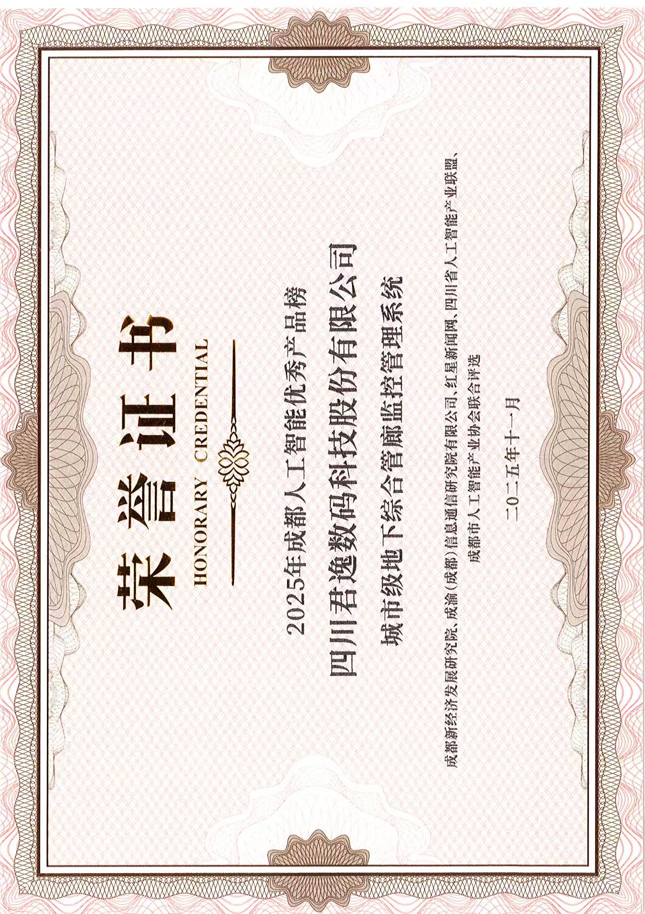 11月14日,由成都市經(jīng)信局市新經(jīng)濟(jì)委主辦的成都市人工智能產(chǎn)業(yè)發(fā)布活動(dòng)成功舉辦。君逸數(shù)碼憑借在人工智能領(lǐng)域的綜合實(shí)力與創(chuàng)新成果,成功入選“成都市人工智能生態(tài)企業(yè)榜(2025)·AI50強(qiáng)綜合榜”。同時(shí),公司旗下核心產(chǎn)品——城市級(jí)地下綜合管廊監(jiān)控管理系統(tǒng)憑借其創(chuàng)新技術(shù)與廣泛應(yīng)用,實(shí)力斬獲“2025年成都人工智能優(yōu)秀產(chǎn)品榜”獎(jiǎng)項(xiàng),彰顯了公司在AI技術(shù)與智慧城市融合應(yīng)用方面的實(shí)力。