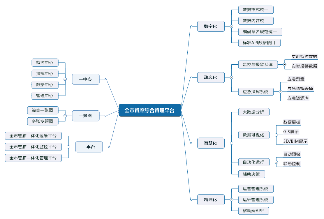 以一中心、一平臺(tái)、一張圖為核心構(gòu)建烏魯木齊市地下綜合管廊“智慧大腦”: