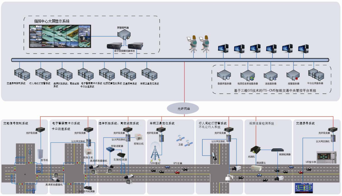 本項目建設(shè)內(nèi)容涵蓋:智能交通信號控制系統(tǒng)、電子警察兼卡口系統(tǒng)、違停抓拍系統(tǒng)、不禮讓行人系統(tǒng)、卡口測速系統(tǒng)、視頻監(jiān)控系統(tǒng)、高空監(jiān)控系統(tǒng)、視頻流量檢測系統(tǒng)、信息發(fā)布系統(tǒng)、行人闖紅燈預(yù)警系統(tǒng)、數(shù)據(jù)機(jī)房配套等12個前端子系統(tǒng)。整個系統(tǒng)由前端子系統(tǒng)、中心處理單元、中心平臺組成,此次信號控制系統(tǒng)接入全市統(tǒng)一的信號控制平臺。