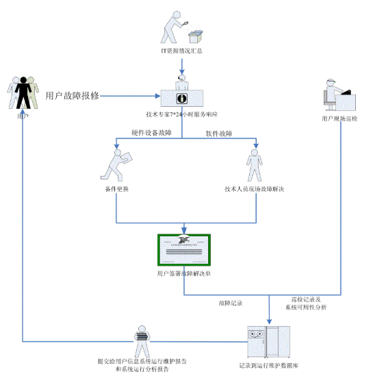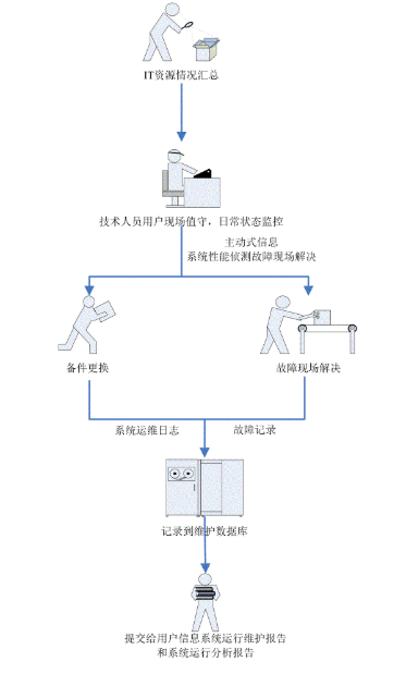 技術(shù)人員現(xiàn)場值守運行維護(hù)服務(wù)的基本操作流程: