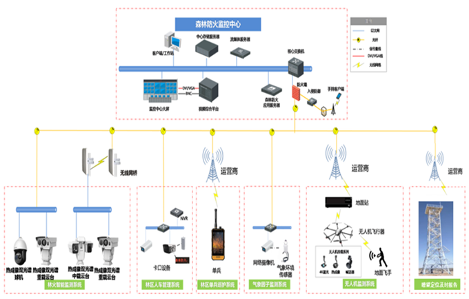 森林防火監(jiān)測預(yù)警系統(tǒng)架構(gòu)圖: