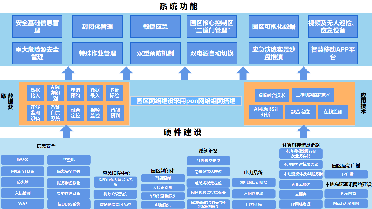 根據(jù)《化工園區(qū)安全風(fēng)險(xiǎn)智能化管控平臺(tái)建設(shè)指南》要求,化工園區(qū)信息化平臺(tái)要建設(shè)安全基礎(chǔ)管理、重大危險(xiǎn)源安全管理、雙重預(yù)防機(jī)制、特殊作業(yè)管理、封閉化管理、敏捷應(yīng)急管理等應(yīng)用模塊,建設(shè)化工園區(qū)安全風(fēng)險(xiǎn)智能化管控平臺(tái)、易燃易爆有毒有害氣體泄漏探測(cè)和大范圍速掃、園區(qū)數(shù)據(jù)可視化。