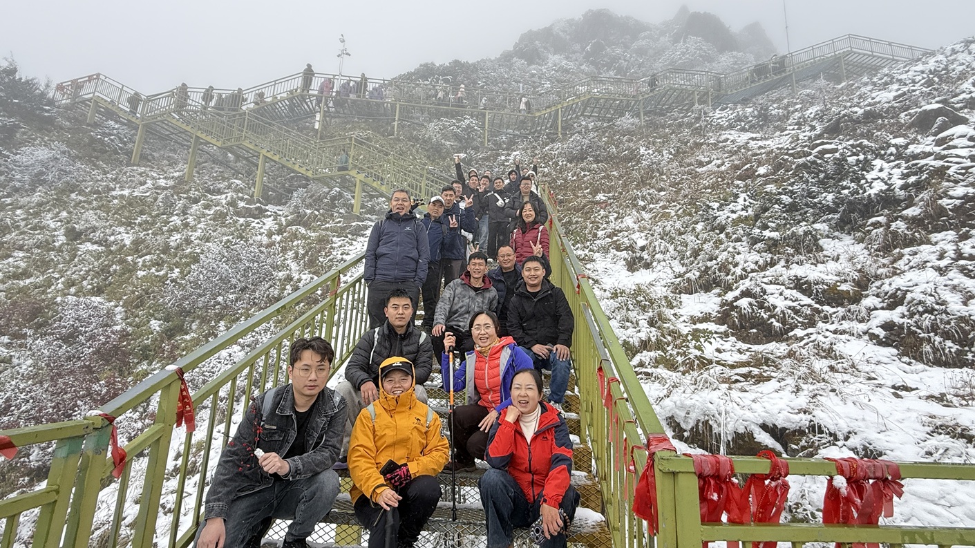 26日一早,部分熱愛運動的同事便迎著晨光開始了自愿晨練,以飽滿的精神狀態(tài)迎接新的一天。在享用過早餐后,團(tuán)隊開始了第二天的西線游覽。而驚喜也從一早便不期而遇。當(dāng)團(tuán)隊抵達(dá)纜車乘車點,正準(zhǔn)備開啟高空之旅時,眼尖的同事發(fā)出了驚喜的低呼——不遠(yuǎn)處的樹上,兩只憨態(tài)可掬的小熊貓正悠閑地覓食! 它們毛色亮麗,拖著蓬松的大尾巴,在枝椏間靈活活動的樣子瞬間吸引了所有人的目光。大家紛紛放緩腳步,舉起手機(jī),不愿打擾這珍貴的畫面,只是靜靜地拍照、錄制視頻,記錄下這難得一見的可愛場景。這場與“雪山精靈”的美麗邂逅,讓大家倍感幸運,也對喇叭河優(yōu)良的生態(tài)環(huán)境贊不絕口,帶著這份美好的心情,大家乘纜車抵達(dá)焦山,將壯麗的云海與雪山盛景盡收眼底。隨后,團(tuán)隊繼續(xù)游覽了色彩絢麗的紅石灘與靜謐迷人的鹿池,徹底沉醉于喇叭河的自然魅力之中。